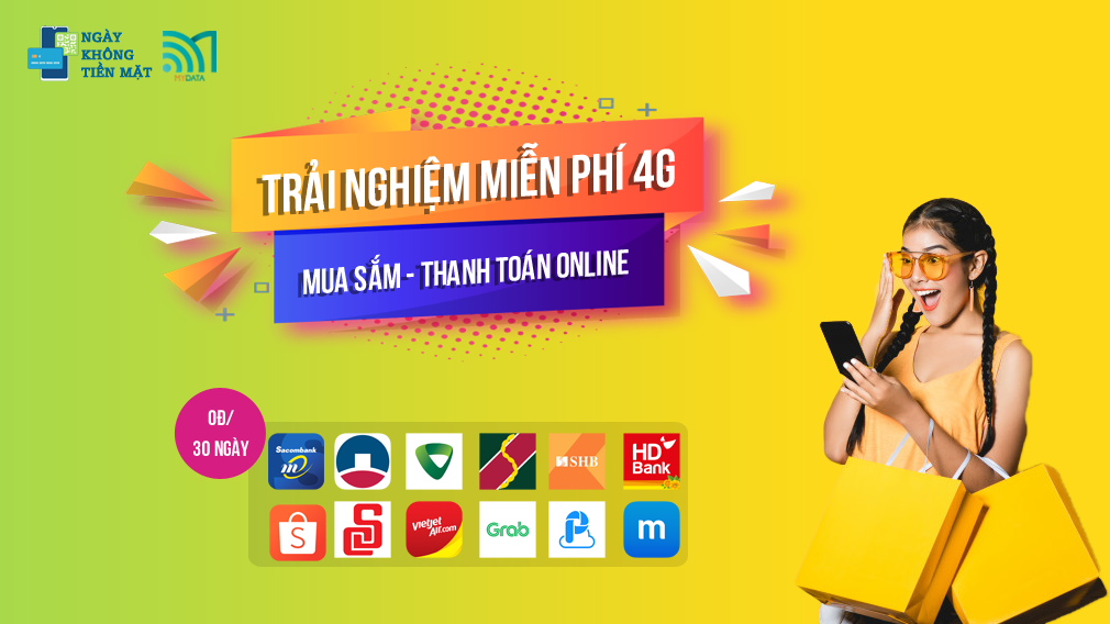 XEM THÊMHưởng ứng chủ trương của Chính phủ và Ngân hàng Nhà nước về đẩy mạnh thanh toán không dùng tiền mặt, từ ngày 10/06/2020 đến hết ngày 09/07/2020, MyData chung tay cùng Báo tuổi trẻ triển khai chương trình Trải nghiệm MIỄN PHÍ 4G "Mua sắm online - Ngại gì Data" dành cho các khách hàng là thuê bao Viettel.
